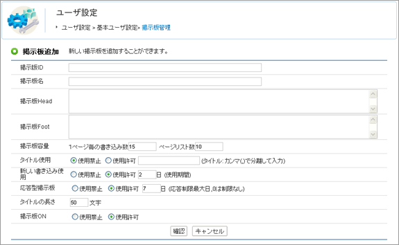- 応答型掲示板 : 掲示板を応答可能にするかどうかを選択します。